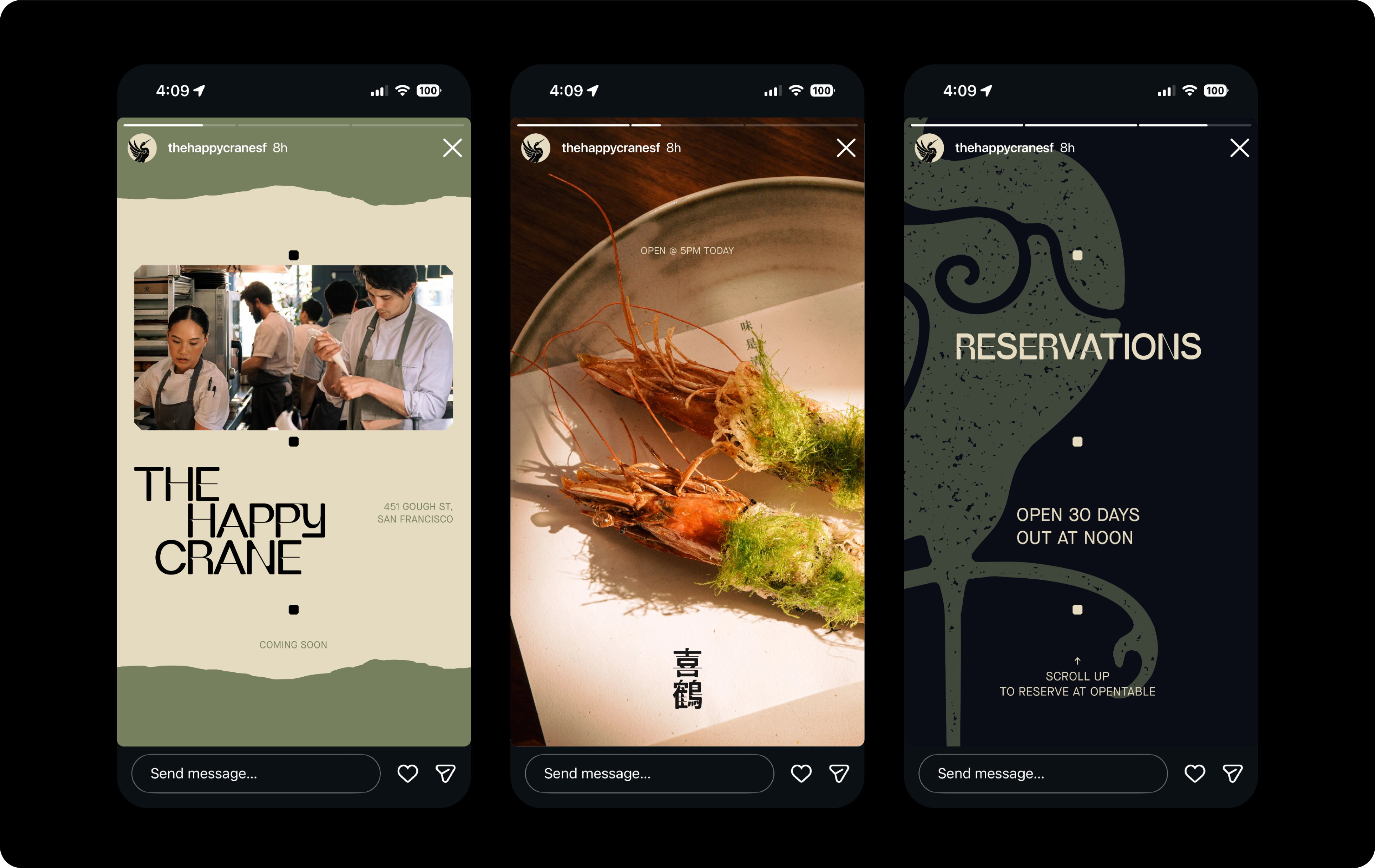The crane is a cultural metaphor for longevity, wisdom, and nobility, from which we created a visual identity that bridges tradition and innovation through subtle, meaningful design choices. Every element was intentionally crafted to communicate The Happy Crane's core philosophy: a restaurant rooted in authentic Chinese flavours but expressed through contemporary technique, positioning it as a culinary destination that honours tradition while inviting fresh experiences.
